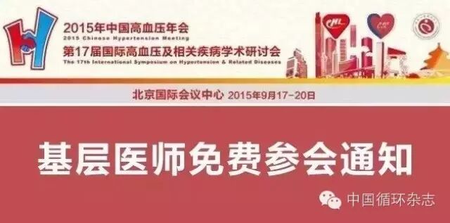“2015年中国高血压年会”及“第17届国际高血压及相关疾病学术研讨会”将于2015年9月17-20日在在北京国际会议中心召开。为了鼓励更多的基层医师了解高血压领域的最新进展并与国内外的同行进行学术交流,现特开通针对基层医师的微信免费注册通道。